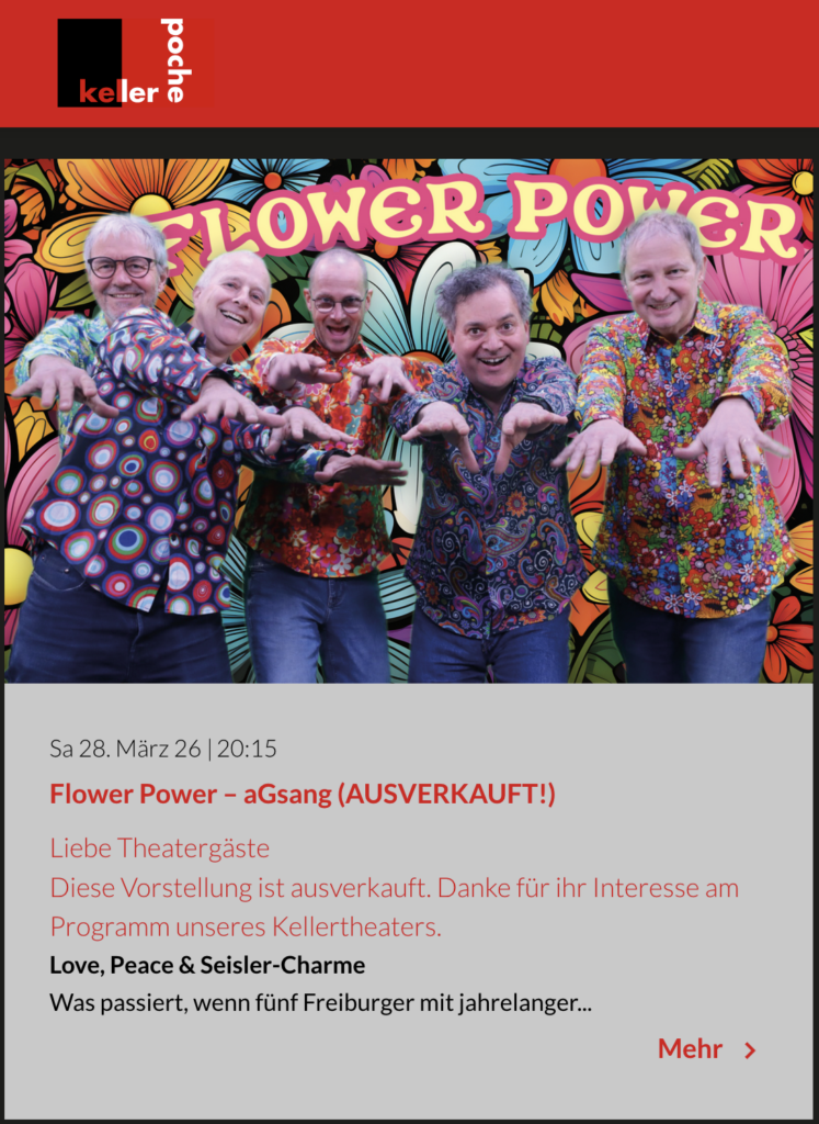 aGsang begeistert im ausverkauften Saal Jung und Alt mit ihrem witzigen Bühnenprogramm. Herzlichen Dank an alle Konzertbesucher:innen und das Organisationsteam für die grosse Arbeit hinter den Kulissen, die Gastfreundschaft und das gemütliche Beisammensein nach dem Auftritt!